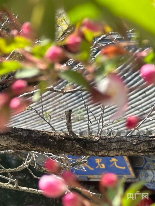 央广网泰安4月25日消息(记者程立龙)近日,随着气温逐渐升高,泰山后石坞海棠花绽放。海棠花有 “花中神仙”的美称。粉白色的海棠与泰山的青松翠柏、红墙绿瓦相互映衬,形成了独特的景观,把雄伟壮丽的泰山装点得更加清丽娇媚,引得游客驻足。