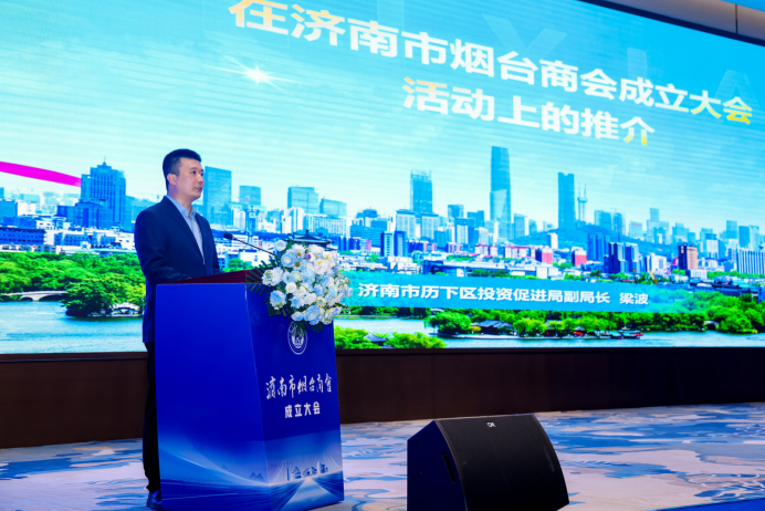 为推促进两地资源精准对接,推动产业协同落地,大会设立济南市、烟台市“双招双引”项目专题推介环节。济南历下区投资促进局副局长梁波系统介绍了济南市的产业布局与营商环境优势。烟台市投资促进中心副主任张刚详细推介了烟台市的重点产业、招商政策与发展机遇。