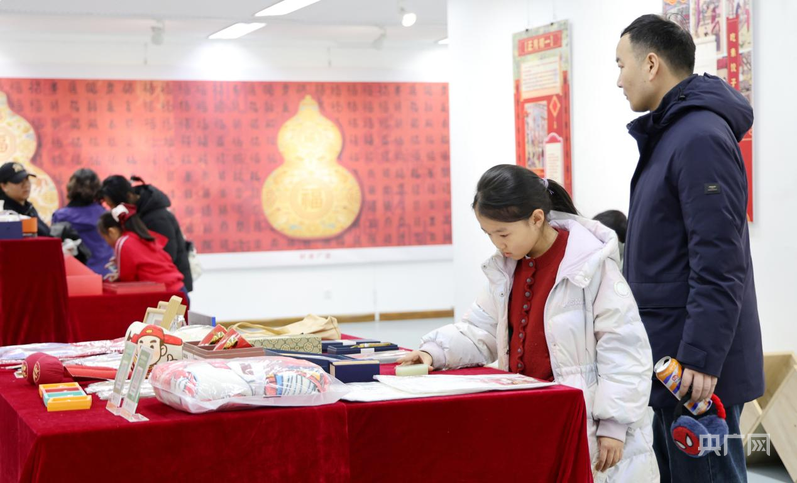 非遗展厅同样人气爆棚,成为亲子家庭感受传统文化的重要窗口。志愿者王先生一边引导观众有序参观,一边细致介绍展品背后的文化故事:“展厅里的展品均围绕传统文化和春节主题打造,每一件作品都承载着浓厚的年俗底蕴和民族情怀。”