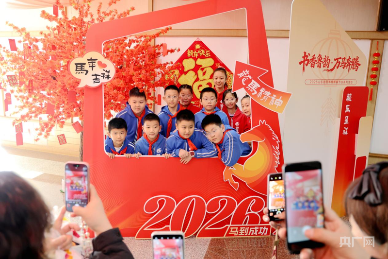 现场打卡专区人气十足,小读者们驻足留影、参与互动,在浓厚年味中感受文化魅力。(央广网发 郭友生 摄)