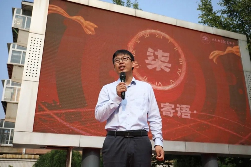 山大附中初中段负责人张敦迎首先欢迎加入附中大家庭的初一学生和新教师。他用“梦想、有爱、同在”3个关键词为大家诠释了“山大附中人有我”的含义。