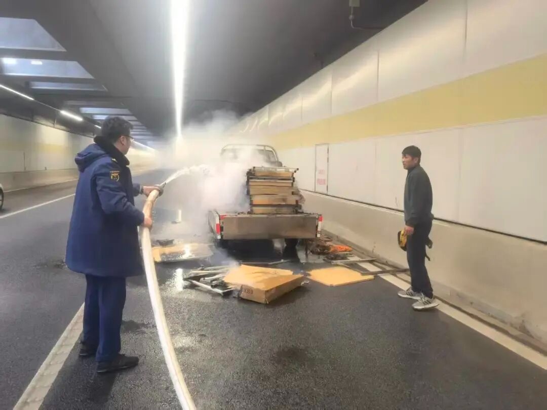 得益于日常严格的训练和丰富的消防知识储备,他们操作规范、处置得当,在短时间内成功控制了火势,并扑灭明火,消除了火灾隐患。由于发现及时、处置迅速,事故未造成人员伤亡,最大程度减少了车主的财产损失,也保障了隧道交通快速恢复正常。