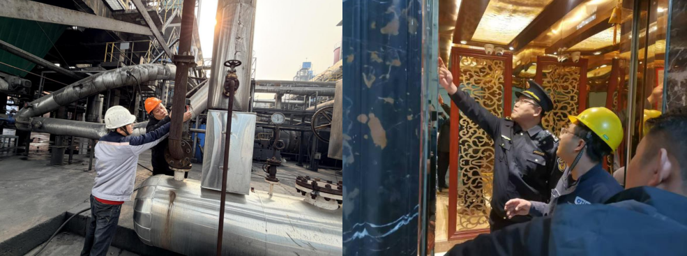 省市场监管局特监处带领专家组,对青岛、淄博、潍坊、滨州、菏泽等地开展“春节”前特种设备安全检查督导工作,聚焦液化石油气充装、公共聚集场所电梯、景区游乐场所等单位,现场查阅台账资料,查看设备安全运行状态,重点检查设备使用登记、定期检验、日常维护等情况,全力保障特种设备安全运行。