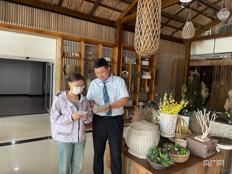 建设银行员工上门为企业主介绍金融服务(央广网发 黎钢 摄)