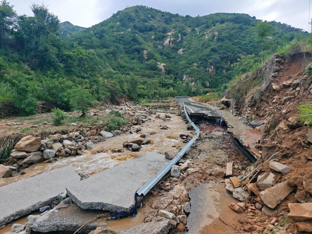 7月22日14时许,记者一行到达距离石屋子村最近的一个岔路口。正在路口指挥车辆的基层干部告诉记者,岔路上行的路还能通车,但已经被救援车辆“塞满”。要抵达石屋子村,只能选择走岔路下行的路,但道路损毁严重,已不具备车辆通行能力,只能步行前往。