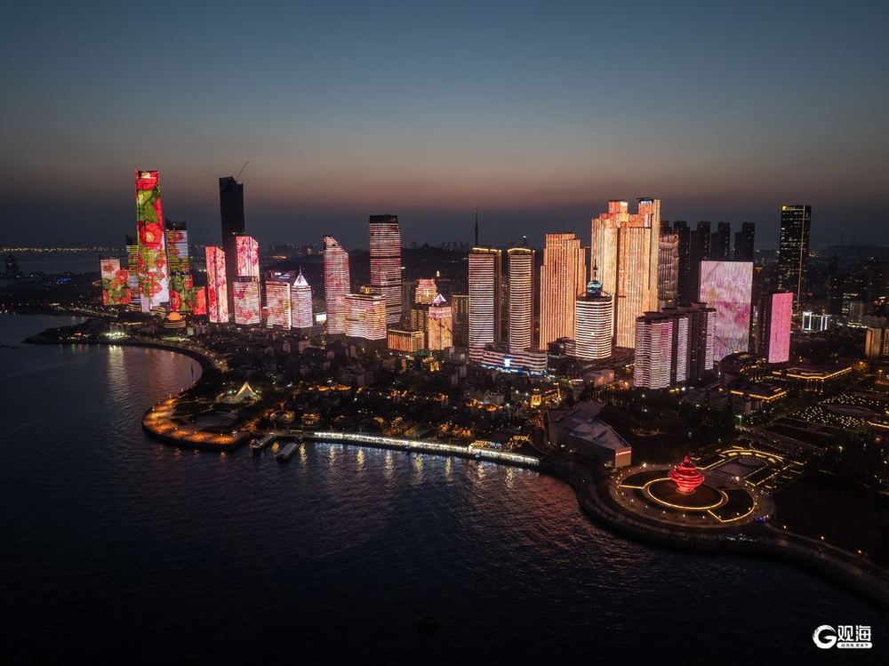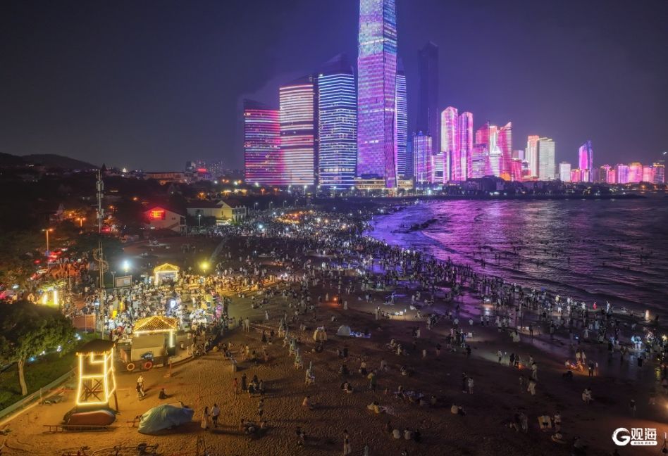 傍晚在五四广场散步,海风裹着潮气扑过来,带着点海草的腥气。对岸的楼群亮了灯,不像陆家嘴那样挤得慌,倒像是撒在黑布上的珠子,稀稀落落的。女儿指着远处的灯塔喊“星星”,我妈就给她讲“灯塔照路”的老话,我爸掏出手机拍海浪,说要发给他那帮老伙计,“让他们瞧瞧,这海比黄浦江敞亮”。