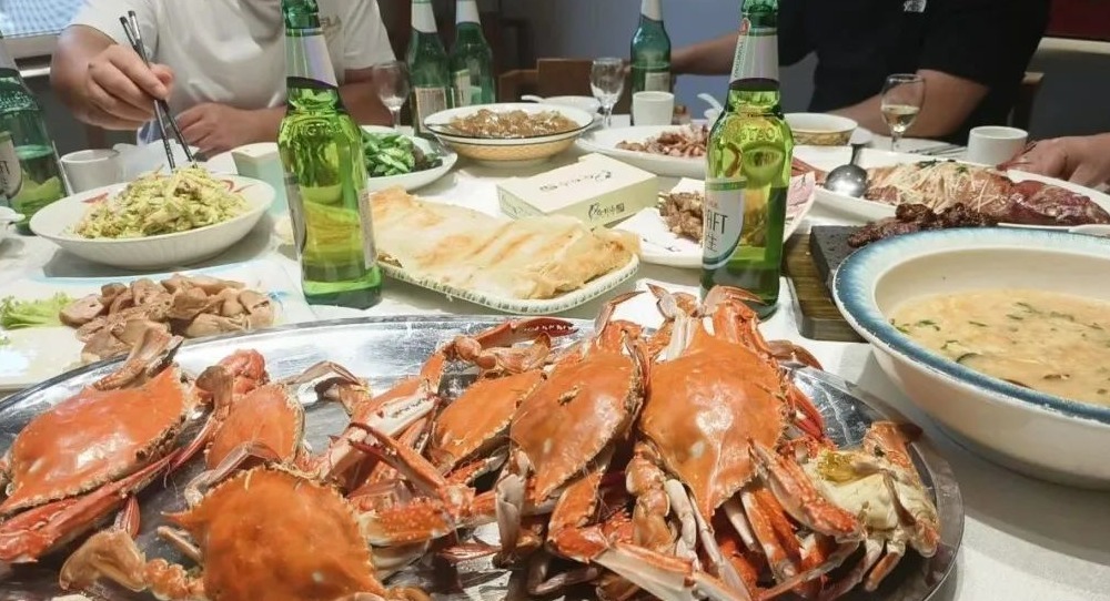 这些海鲜不像上海宴席上的那样讲究摆盘,它们就那么实实在在地摆在盘子里,带着海水的咸,透着阳光的鲜,吃进嘴里,像把大海的味道嚼在了舌尖。