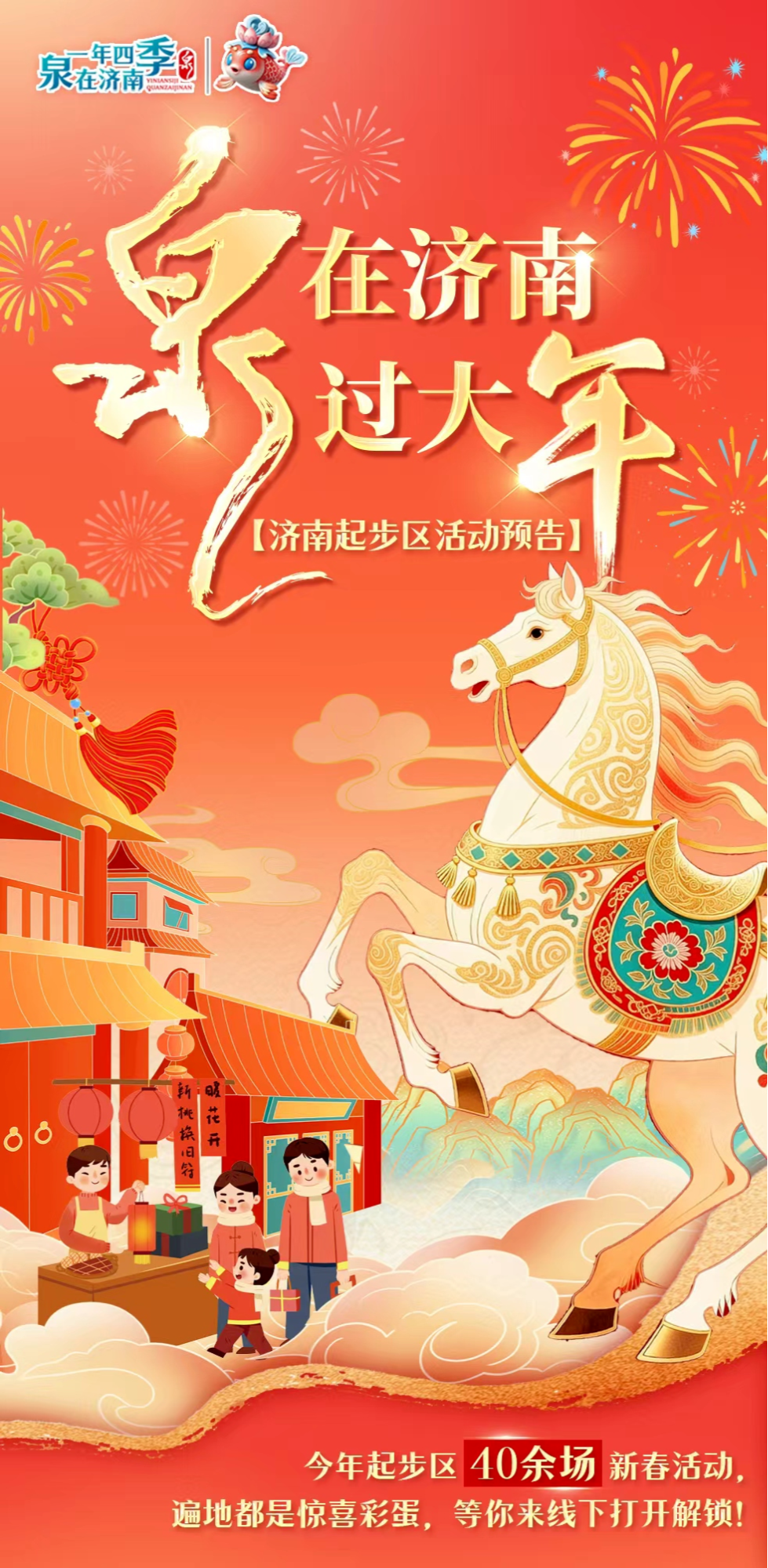 腊月辞旧岁,新春启新程。这个春节,济南起步区诚意满满,邀您一起“泉”在济南过大年!从1月中旬持续到3月初,起步区宣传文化部围绕“泉在济南过大年”主题,精心策划了四十余场涵盖文艺演出、民俗体验、体育赛事、主题市集等多维度的新春文化活动,让您在家门口就能沉浸式感受醇厚年味与新区蓬勃活力。