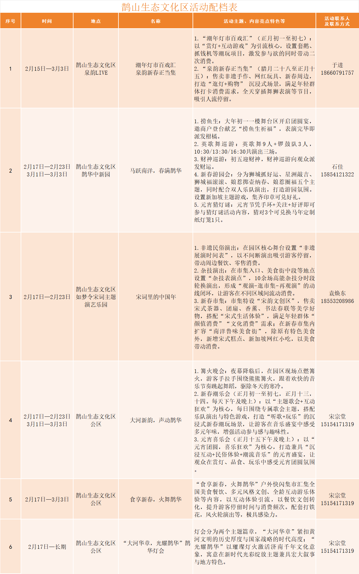 鹊山生态文化区重磅打造多场融合文化体验、光影艺术与潮流消费的大型活动:“大河华章,光耀鹊华”首届鹊华灯会,洋溢异域风情的“马跃南洋,春满鹊华”游园会,沉浸式宋词主题体验“宋词里的中国年”,还有热闹非凡的篝火晚会、民俗演出及特色游玩市集。白天赏景品韵,夜间流光溢彩,邀您昼夜畅玩,解锁“年轻化、时尚感”十足的新春盛宴!