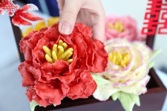 9月27日,商户在摆放婚庆主题的花样馒头。张进刚 摄
