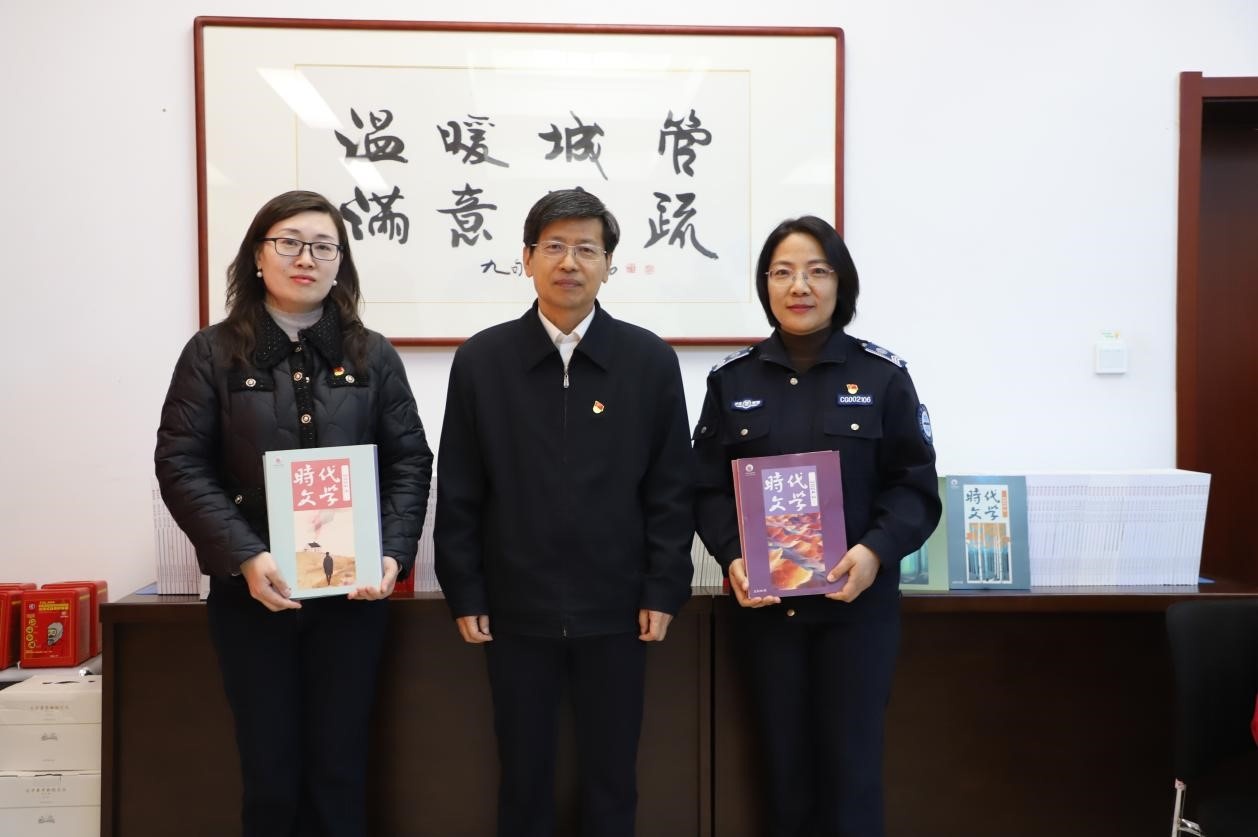 山东省作家协会党组成员、副主席陈文东代表期刊社向社区和服务中心捐赠《山东文学》《时代文学》等刊物及文学书籍两百余册。他强调:“文学工作者要深入基层,用笔墨记录城市管理的温暖点滴,传递平凡岗位的不凡力量。”