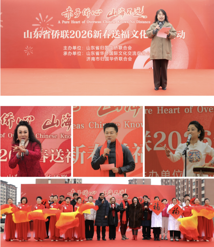 1月30日,由山东省侨联主办,山东省华侨国际文化交流促进会、济南市侨联联合承办的“赤子侨心·山海不远 —山东省侨联2026新春送福文化惠民活动”,在省侨联与济南市侨联共同的“双报到”社区——章丘区埠村新源社区举行。省侨联党组成员、副主席赵雪霓,济南市侨联党组成员、副主席孙洪成,章丘区政协副主席张健,侨界艺术家、书法家、法律工作者、中医师、口腔专家及新源社区居民代表共同参加活动。