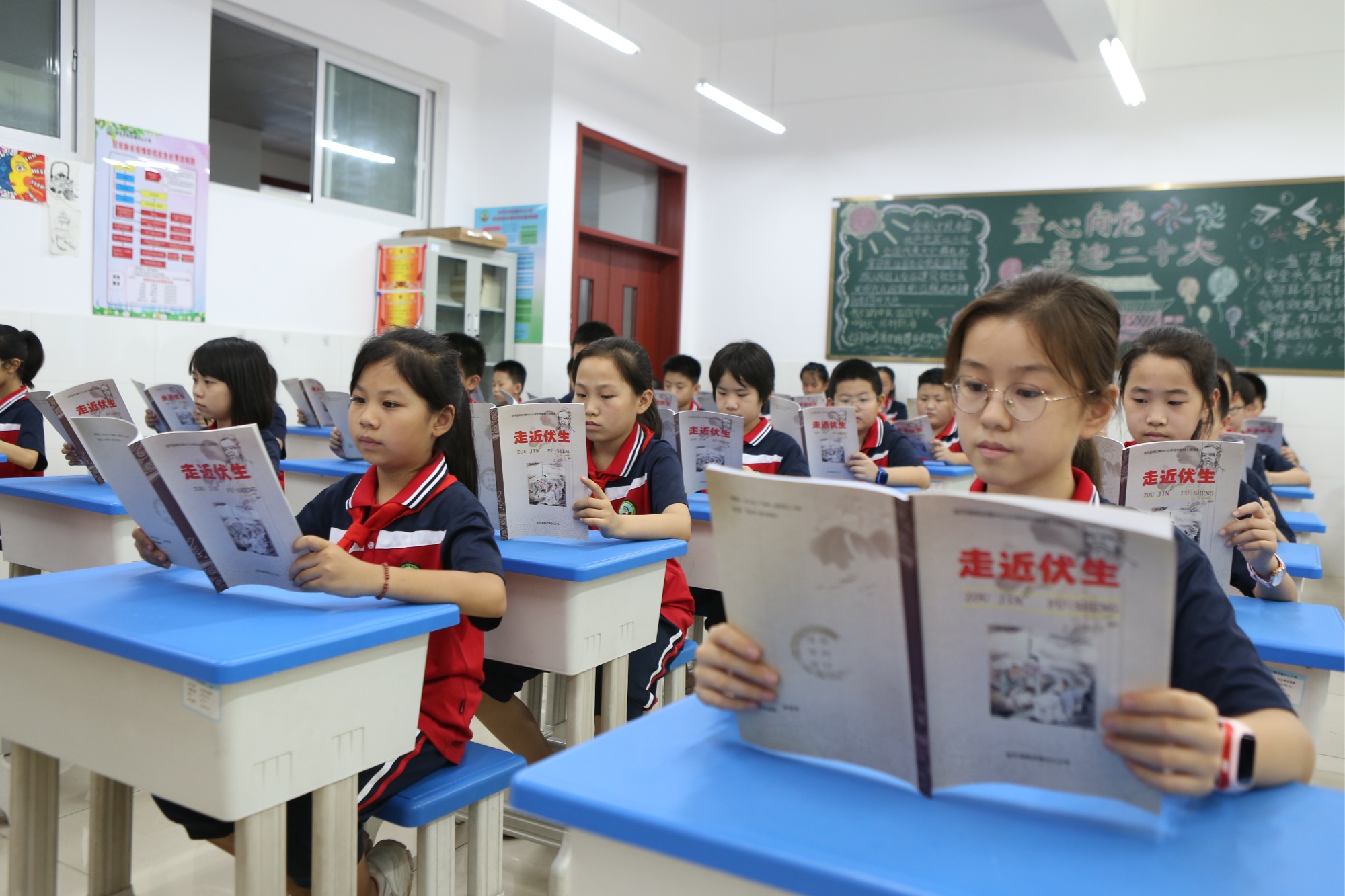 韩店镇在镇中心小学建有伏生纪念馆,以雕塑、图片、书籍及文字介绍等形式,全面展现了伏生传《尚书》的事迹和对后世的影响;自编国学读本《走近伏生》,书中收录有伏生故事、纪念伏生的诗词以及历代伏生授经图、《尚书》简介及名篇名句。利用每周的国学课,由老师进行讲授,让伏生故里的孩子们走近伏生、了解伏生,感悟伏生精神、传承弘扬《尚书》文化。“学校十分重视国学教育,作为伏生故里,我们更有义务将文化传承的种子播撒在孩子们心中,进一步增强他们的文化自豪感。”韩店镇中心小学副校长宋淑英说。