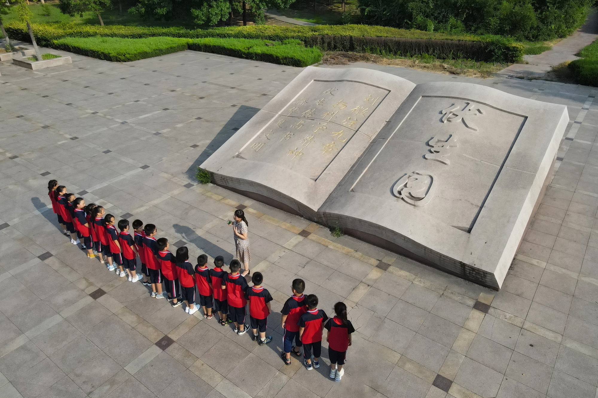 韩店镇政府驻地东北侧,新世纪中学以南,有一处占地约60亩的伏生主题公园。入口是展开的石刻“书卷”,上面刻着“伏生园”几个鎏金大字。伏生园东侧,一组竹简样式的巨型木刻立于眼前。高大的竹简上,刻有王奎强先生书写的《尚书》名篇《高宗肜日》和伏生简介,与周边的竹林相映成景。此外,韩店镇还在辖区内中小学广泛开展了以伏生为主题的文化活动,成功举办了多届“伏生杯”经典诵读比赛,比赛吸引了学生、机关干部、群众积极参与。