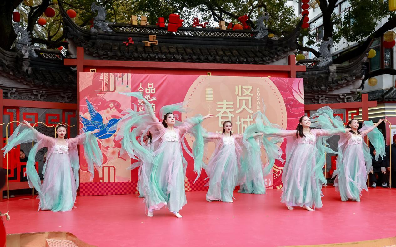 1月1日下午,奉贤青溪老街人头攒动,“品一碗人间烟火·贤城春晓”2026奉贤新年嘉年华活动在非遗炫彩《龙飞凤舞》中拉开帷幕。这场在元旦假期首日上演的活动以文化为魂、古镇为景,呈现了一场集非遗展示、古风游园、美食文创、音乐互动于一体的沉浸式新年盛会。市民游客身穿古装逛市集、品美食、赏非遗、游古镇,度过了一个别样的元旦假期。