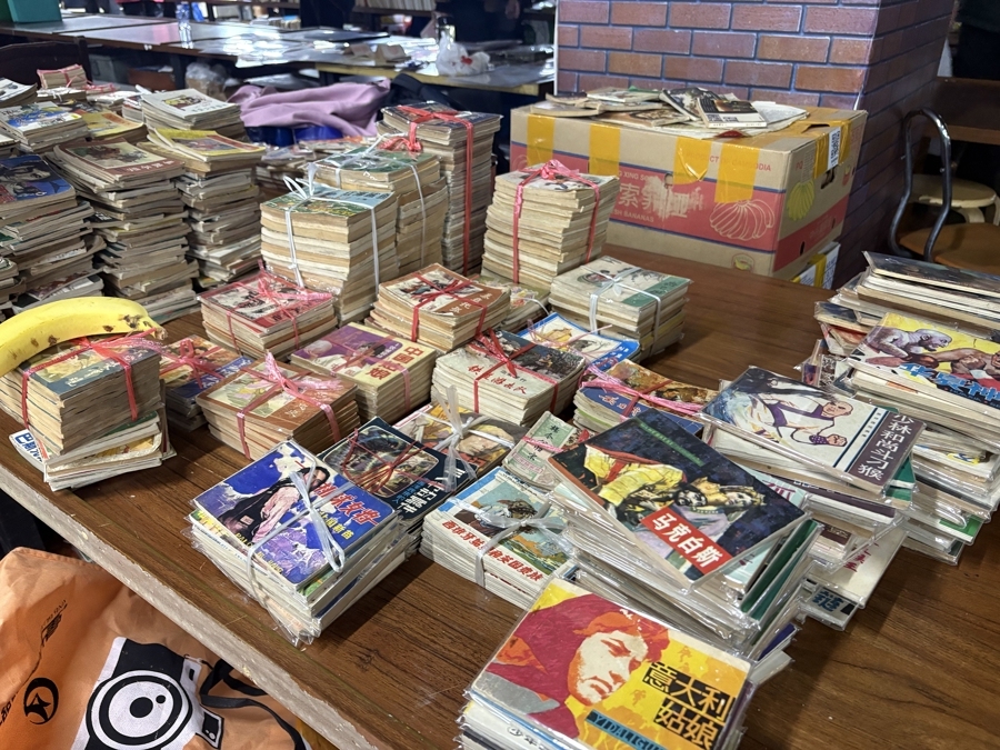 乘电梯至四楼,一股旧物特有的气息扑面而来——那是混合着时光、灰尘和文字的气味。2300多平方米的空间里,旧书市集占据了三分之一,八九十个摊位参差排列,书籍从地面堆到半人高,形成一道道纸质的峡谷。有的摊主将书籍锁于桌面下的老式木箱中,方便每周日的出摊。