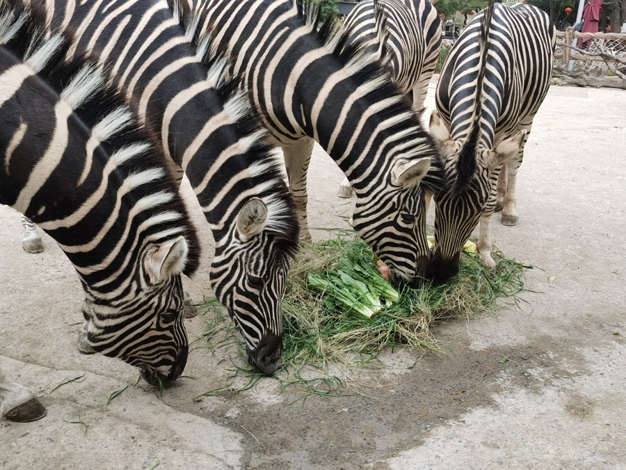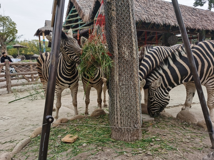 除了福袋,还有一目了然的大盆菜,青草是斑马的真爱。 陈玺撼摄