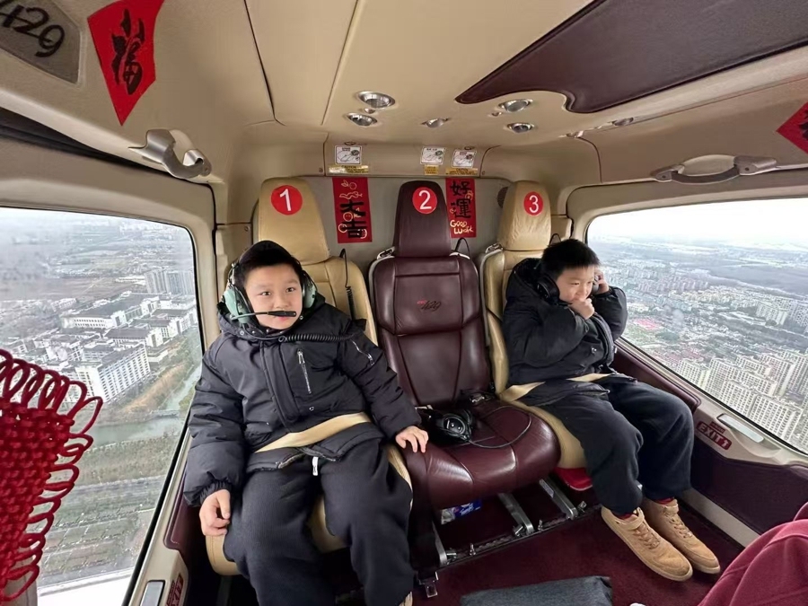 此外,航班还为乘客配备了降噪耳机。据介绍,直升机飞行时,机舱外的噪音约80分贝,乘客佩戴降噪耳机后,几乎不会受到噪音影响,还能通过耳机上的麦克风与同伴正常通话。“以前春运出行,人们总在奔波途中;如今通过直升机航线,我们希望让更多人把春运变成一场游玩的过程。”李洋说。