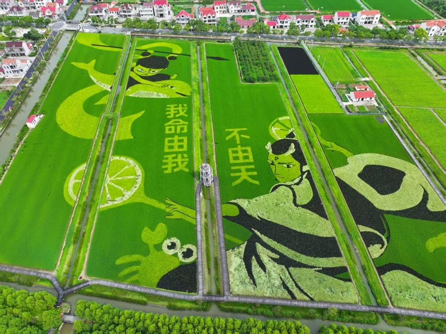“我们从2018年起就启动了稻田画项目,今年稻田画里有火箭升空、红旗飘舞、哪吒大战敖丙等图案,契合国庆又充满童趣,小朋友们特别喜欢。”横沙稻田画设计师闫伟兴告诉记者,近年来横沙乡将创意农业与休闲旅游相结合,稻田画“引流”作用明显。