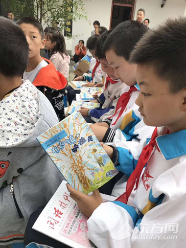 图片说明:在湖北农家书屋捐赠活动上,孩子正在读《布罗镇的邮递员》(少年儿童出版社供图)