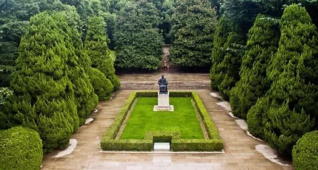 鲁迅墓建于1956年,占地1600平方米,系用2000多块花岗石构筑,墓地坐北朝南,平面呈长方形,墓前大道设三级台阶连接墓前广场,广场绿地中央置高1.71米的鲁迅铜质坐像。