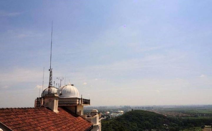 佘山天文台,位于西佘山之巅。1900年创建的佘山天文台,以监测气象为主,后增设地磁、地震、授时等项目。台内设当时领先于东南亚的口径40厘米、焦距7米的赤道式双筒折射望远镜一架。佘山天文台占地面积近1.33公顷。最早的主建筑为欧式钢筋混凝土结构两层楼,呈十字状,东长西短,南北两翼对称。十字交叉处为天文望远镜和铁制圆球顶,建筑面积1990平方米。1987年天文台再次扩建,直径18米,高30 米的白色大型球顶建筑落成。现全台建筑总面积4148平方米。历经百年,建筑保存完好。2013年被国务院列入第七批全国重点文物保护单位。