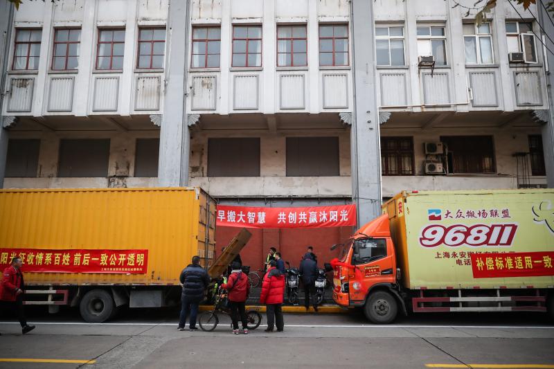 清晨七点不到,搬场的居民就已经做好准备。