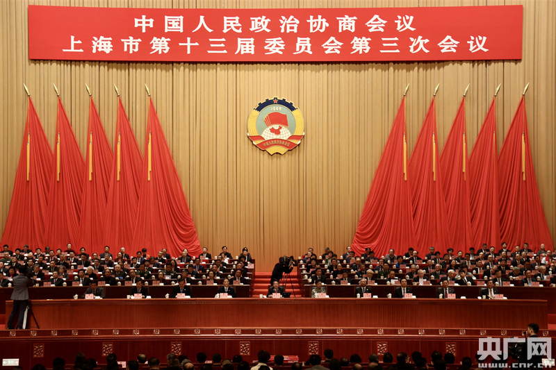 上海市政协十三届三次会议举行全体会议(央广网记者唐奇云 摄)