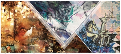 ①马良《西游记》,摄影及艺术微喷。②吴登央《生如夏花》系列3,纸本综合。③李婷《夏雨》,布面丙烯。 (主办方供图)制图:李洁