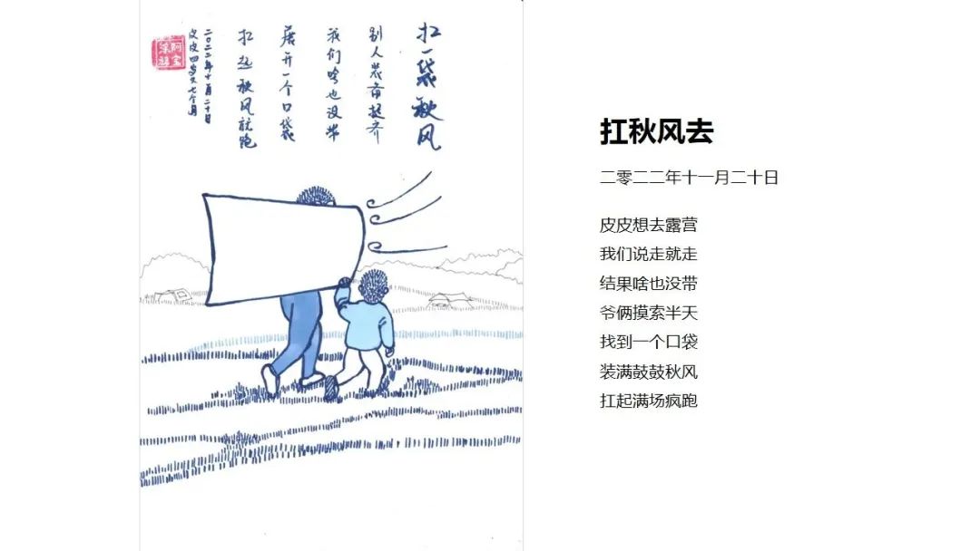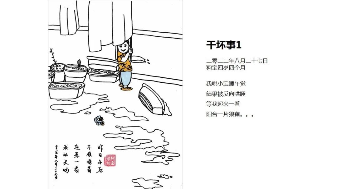 陈丽霞说,自己很享受这一过程。这些漫画不仅是狗宝的成长史,也是全家人生活的一种记录。“孩子是最纯粹和朴实的,我在构思和创作中寻找生活的本质,这是一种很特别的宁静。”
