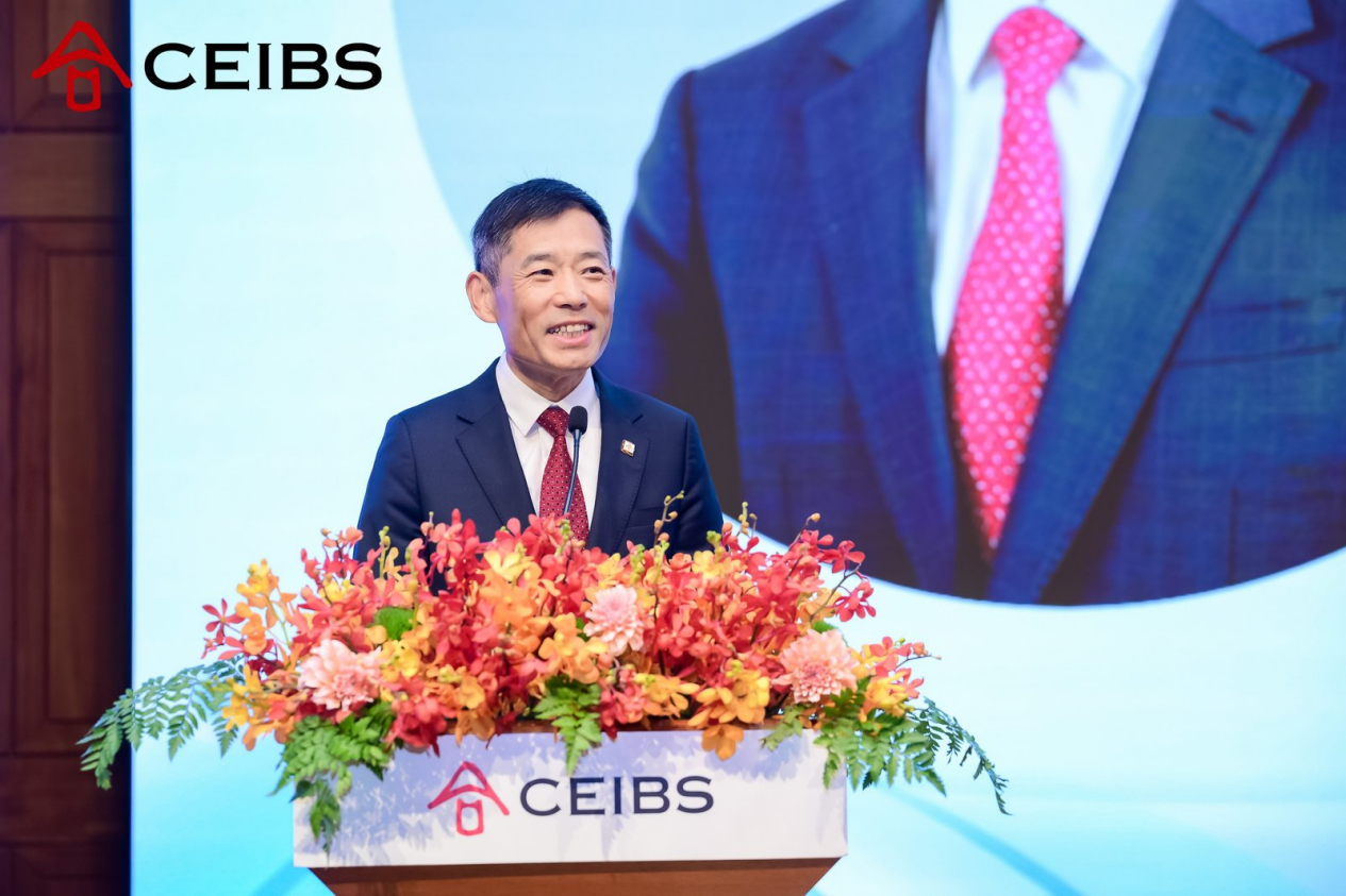 中欧国际工商学院院长(欧方)、市场营销学教授杜道明(Turpin, Dominique V.)发来视频致辞。他指出,本届论坛主题“AI时代的领导力韧性与情感资本”涵盖了三个关键领域:领导力韧性、情感资本以及人工智能的影响。他指出,韧性是高效领导力的核心品质,能帮助领导者在充满挑战的商业环境中保持坚定。同时,他阐述了“情感资本”的重要性,他认为卓越的领袖懂得激发团队的情感投入,从而建立高敬业度与忠诚度的组织文化。面对人工智能的浪潮,他呼吁未来领袖必须学会驾驭这项技术,以保持真正的竞争力。杜道明重申了中欧推动女性领导力发展的长期承诺,强调了包容、谦逊等领导特质对于构建真正韧性的价值。他坚信,支持女性迈向领导岗位不仅是道义必然,更是打造更高效、更成功商业世界的必由之路。