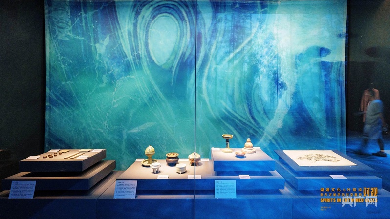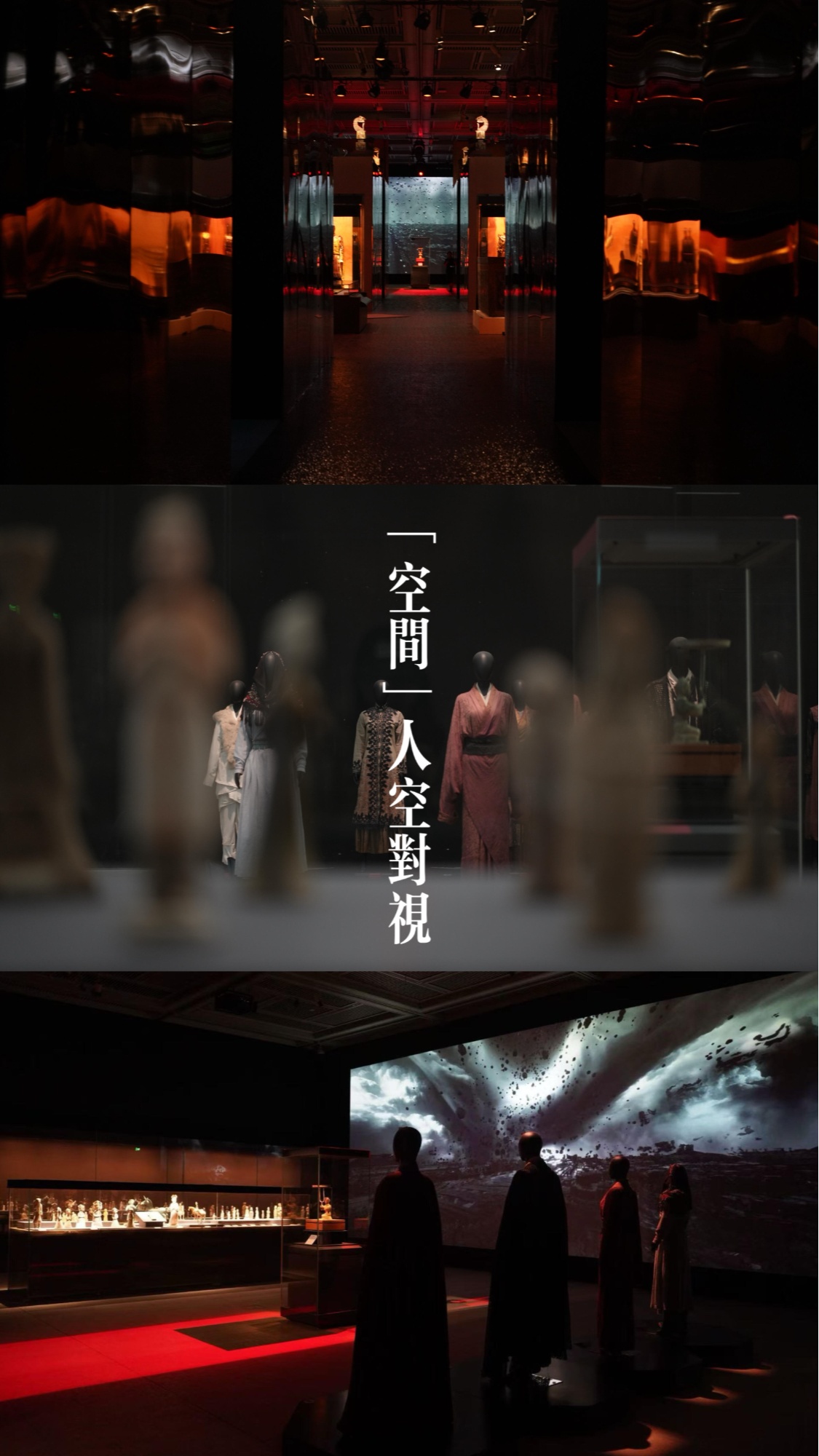 “对视”里最强烈的命题是并置产生的意义。当马王堆 、帛画等承载千年记忆的文物,与电影服装、道具、当代装置同框时,观者看到的不是谁更“前”或“后”,而是留存在时间中经久不息的文化如何在当代语境中被激活与再读 。当“新东方主义”视觉语言与湖湘文化发生对话,提出的问题也变为了更宏大的——当代艺术如何承担起对地域记忆的再现与重构?无论是被镜像分解的个体,还是被旋转的平凡,或是被并置的文物,都在呼唤同一件事:在当代语境下,什么样的“时间”才是真正的“理解”?