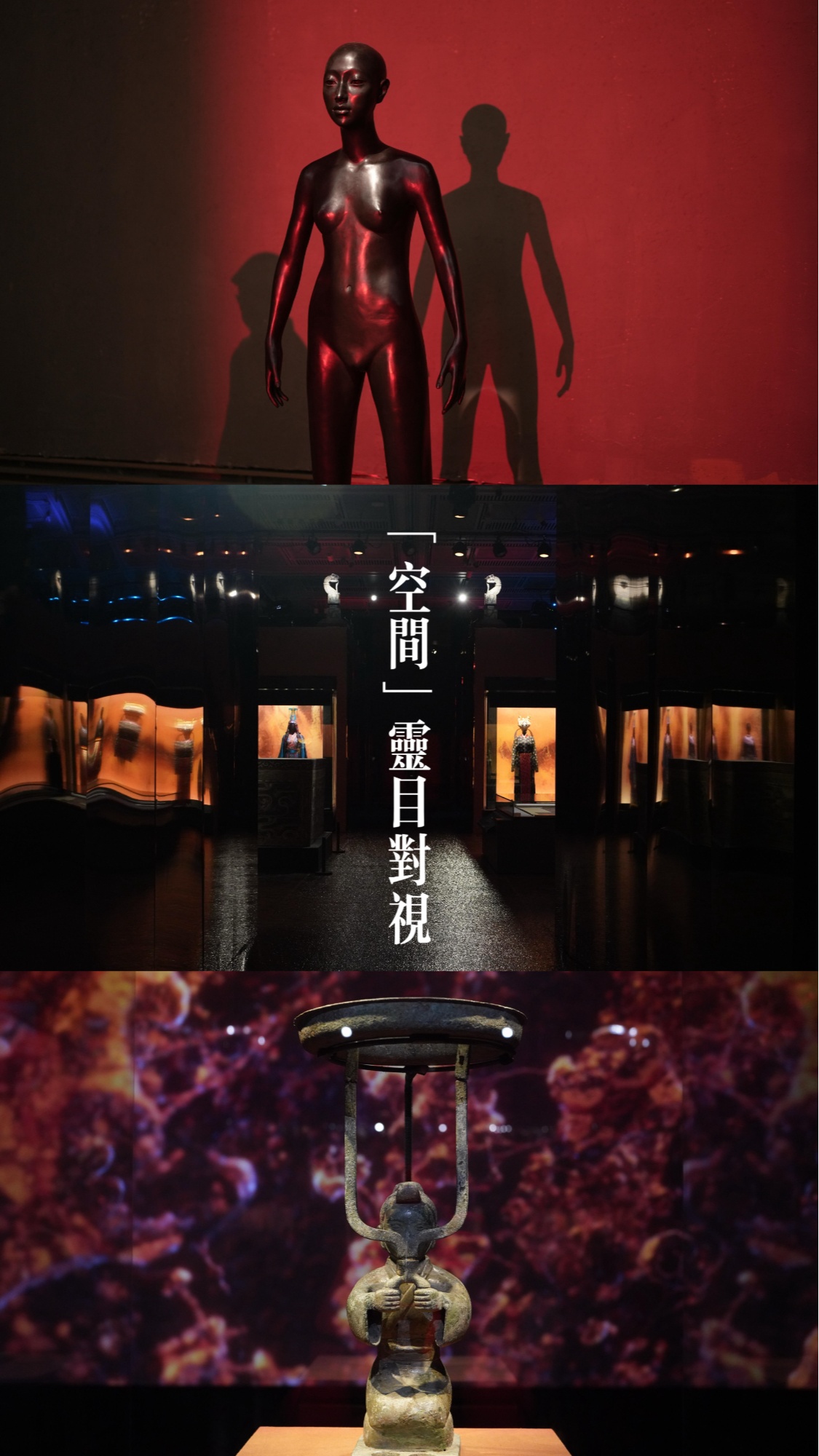 马莉莉:这的确是一次非常富有挑战性的展览,这一束灯光连接了起始展厅里叶锦添老师的青铜塑像作品《原慾》的流泪,“人形跽坐铜灯”头顶的灯油呼应着“原慾”眼中缓缓流出的泪水,这2000年的凝视和血脉里的星火传承,正是这场湖湘文化在历史和现代中的点滴表达,放到历史的舞台上,每一位观众也是被凝视的一部分。正如叶锦添老师的问答——我们如何在影像与物件间被回望?我们的文化记忆如何与当代美学出现对话?观众如何在观看中被重新定位为被观看者?