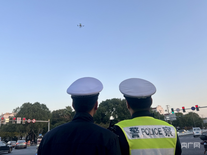 交警借助无人机空中巡检(央广网记者 郭振丹 摄)