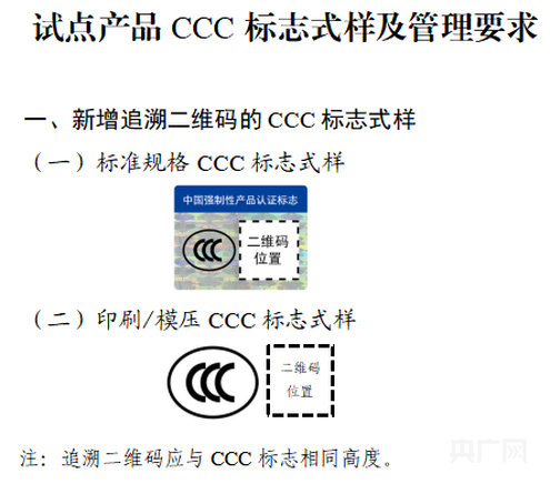 据了解,自2026年3月起,试点产品范围内新获得CCC认证证书的产品型号,应标注CCC追溯二维码后方可出厂、销售、进口或者在其他经营活动中使用。经一年过渡期后(2027年3月起),试点产品范围对应的全部新出厂的获证产品型号,应满足试点改革要求。