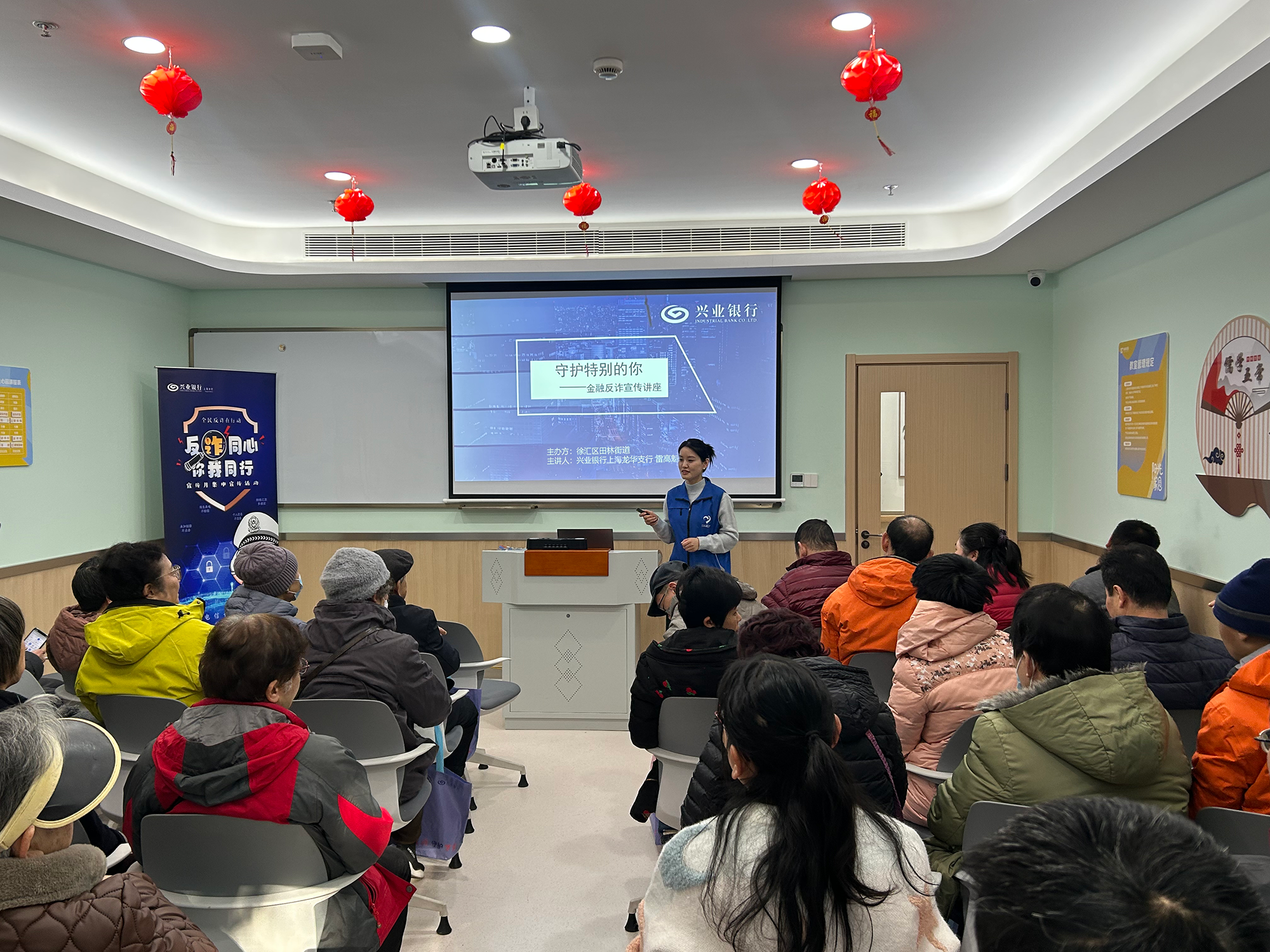 近日,兴业银行上海龙华支行的“蓝马甲”志愿者服务队走进徐汇区田林街道“阳光家园”,为这里的居民们带来了一堂别开生面、充满温度的金融反诈知识讲座。本次活动以“守护财产安全,传递金融温度”为核心,旨在帮助居民识别网络诈骗、电信诈骗等常见风险,切实提升其金融安全意识与自我保护能力。