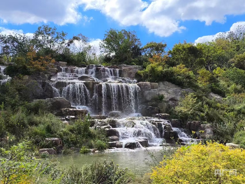 上海世博文化公园的“双子山”瀑布(央广网记者 林馥榆 摄)