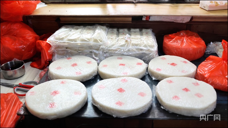 上午十点多,居民徐德珠按照约定准时来取糕。“过年总要吃糕,这是我们这儿的传统,还要订一些送亲戚朋友。”她笑着说,“年初一清早蒸几片,寓意一年更比一年高。”