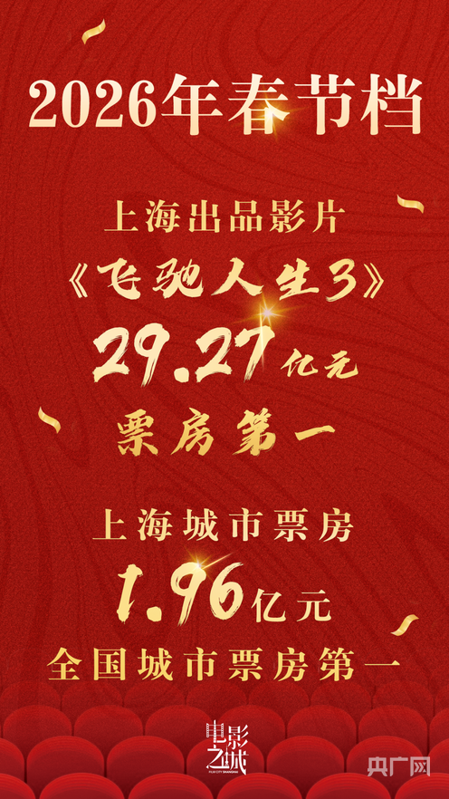 央广网上海2月26日消息(记者林馥榆)刚刚过去的2026年春节档,全国电影票房以57.42亿元的成绩平稳收官,1.2亿人次观众走进影院,总场次435万刷新中国影史春节档纪录。