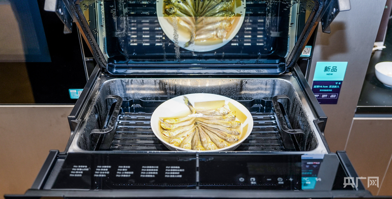 在嵌入式厨电展区,行业首创的抽屉式蒸箱成为另一大亮点。 工作人员介绍,该产品高度仅14.1厘米,但打开后腔体容量可观,可同时蒸12个包子、20个饺子或8个炖盅。“它有三个特点:百秒内升温至95℃,早上5至10分钟就能搞定一家人的早餐;蒸汽量澎湃,能把大闸蟹蒸得透而不老;控温精准到正负1度,适合炖煮虫草等珍贵养生食材。”该蒸箱可与同系列烤箱、复合机、咖啡机灵活搭配,满足不同厨房空间与烹饪需求。