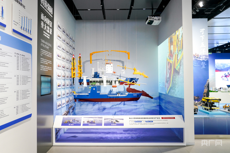 在“光辉历程”和“未至之境”篇章,分别重点展示了交大人的重要科技成果、以及学校面向未来的思考与规划。“向质图强”篇章约占展区面积的80%,分为面向国家重大需求、面向世界科技前沿、面向人民生命健康、面向经济主战场、人文智慧、成果转化、服务地方等7个部分。具体而言,面向国家重大需求重点展示服务海洋强国和制造强国的重要科技成果,面向世界科技前沿重点展示向极宏观拓展、向极微观深入、向极端条件迈进、向极综合交叉发力等四个方面的重要科技成果,面向人民生命健康重点展示服务健康中国战略的重要科技成果,面向经济主战场重点展示服务能源强国、材料强国、信息强国等方面的重要科技成果。