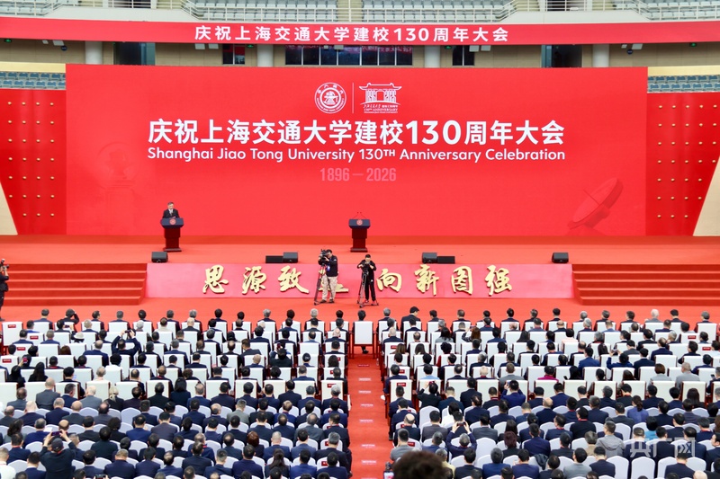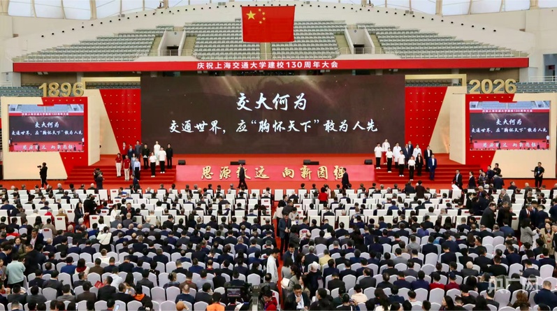 4月8日上午10:00,上海交通大学建校130周年庆祝大会在闵行校区霍英东体育中心举行