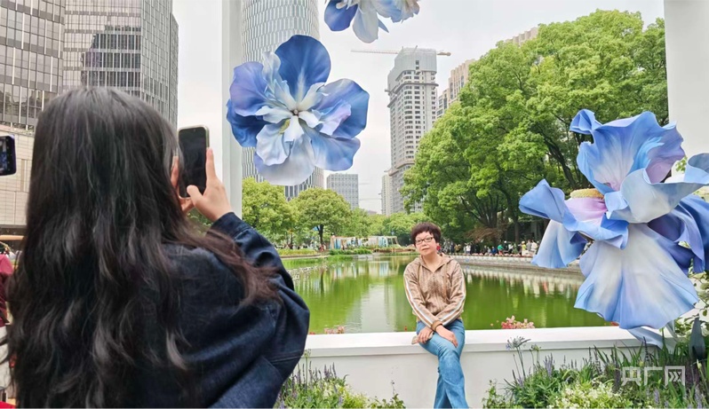 市民在2025上海国际花展新天地展区留影(央广网记者 林馥榆 摄)