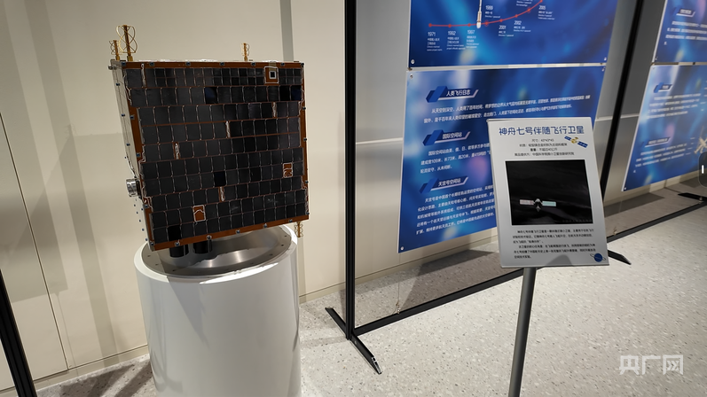 现场陈列的神舟七号伴随飞行卫星 (央广网记者 沈梅摄)