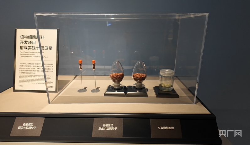 现场展示的搭载卫星的植物细胞原料 (央广网记者 沈梅摄)