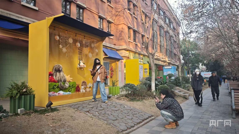 愚园路上的创意装置吸引不少年轻人打卡拍照(央广网记者 林馥榆 摄)
