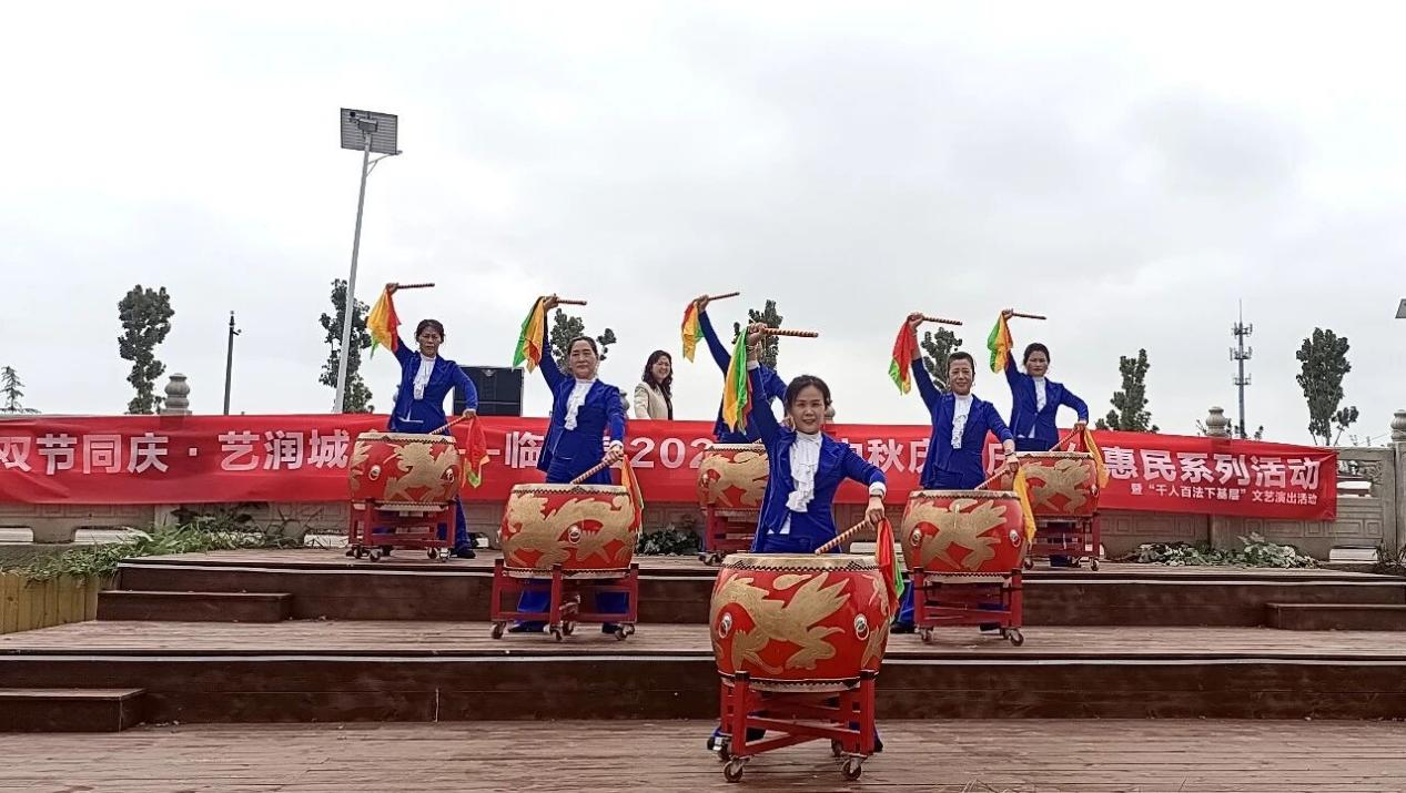 系列活动的首场演出于10月1日在涑水河畔率先点燃热情。庙上姐妹鼓舞队以震天的锣鼓拉开了整个系列活动的帷幕。《中国龙》的翻腾、《九九女儿红》的醇厚、《中华魂》的磅礴、《龙腾盛世》的欢腾,四支鼓舞作品轮番上演,鼓点铿锵,气势如虹,不仅展现了中华传统文化的厚重底蕴,更擂响了临猗人民喜迎盛世双节的澎湃心声。
