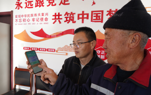 村民点开手机上的数字乡村小程序,村账收支明细实时呈现(宋佳烨 摄)