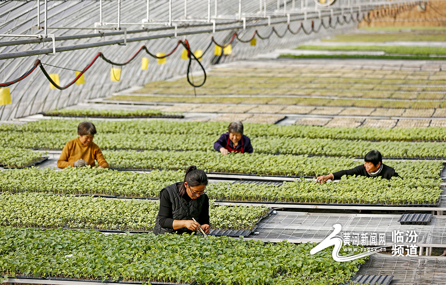 襄汾县古城镇北街村蔬菜育苗基地内一派忙碌的景象(李现俊 摄)