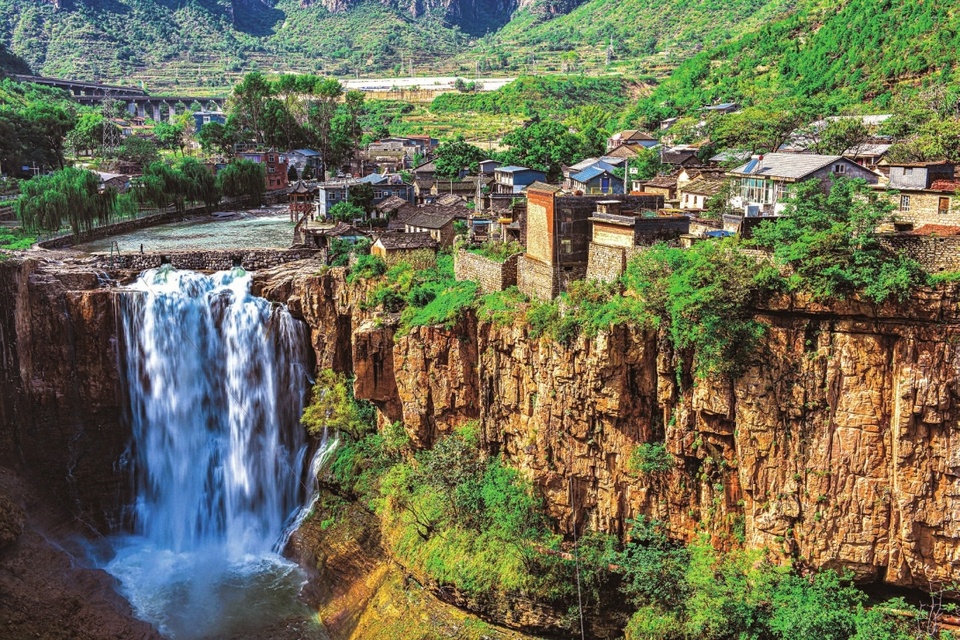 10月9日,平顺县虹梯关乡虹霓村,峭壁绝崖与古老建筑相互映衬。近年来,该村通过打造特色民宿群,为乡村发展注入新活力。(郭世虎摄)
